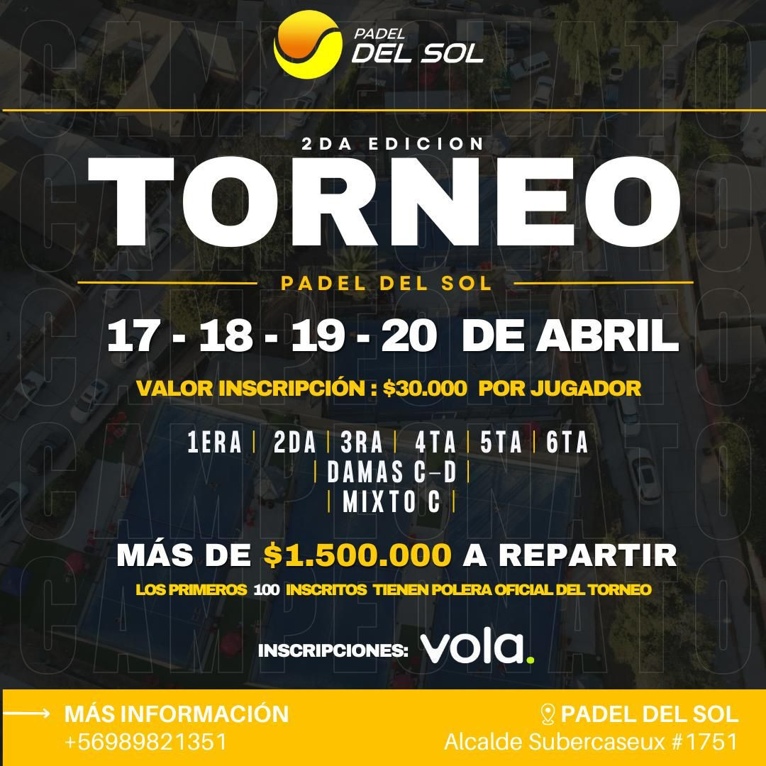 Segunda Edición Torneo Pádel del Sol 2025 [ 17 al 20 de Abril ] - Vola