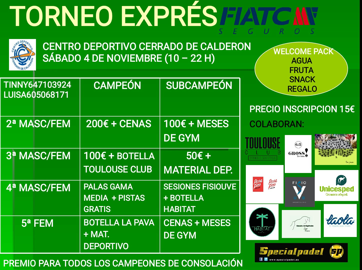 TORNEO EXPRÉS ADULTOS C. D. CERRADO DE CALDERÓN (NUEVA FECHA!)